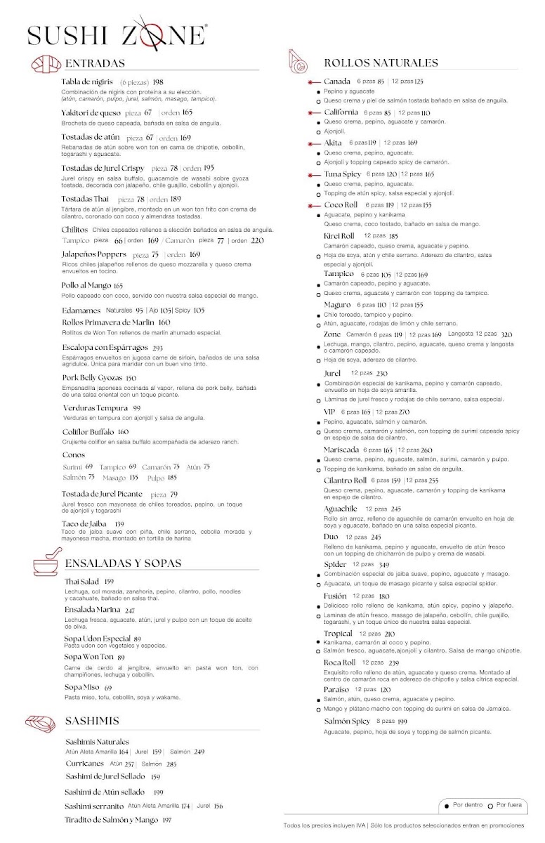 Sushi Zone isn't just a sushi restaurant; it's an experience that tantalizes the taste buds. Their menu showcases a vibrant array of rolls and rice dishes that promise something for everyone. The captivating Cilantro Roll is a standout, featuring a delightful medley of cream cheese, avocado, salmon, shrimp, and octopus, all beautifully topped with kanikama and a drizzle of eel sauce. At just MX$345.00 for 12 pieces, it offers a culinary journey that is both unique and satisfying.